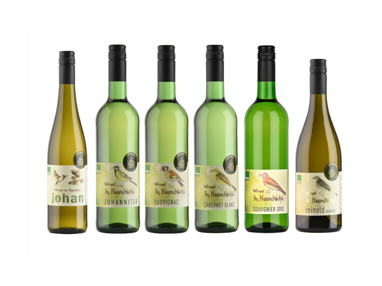 Unserer 2018-er Johanniter im Barrique vergoren und der 2019-er Muscaris Auslese. Als einziges deutsches Weingut erhielten wir zwei mal „Großes Gold“.